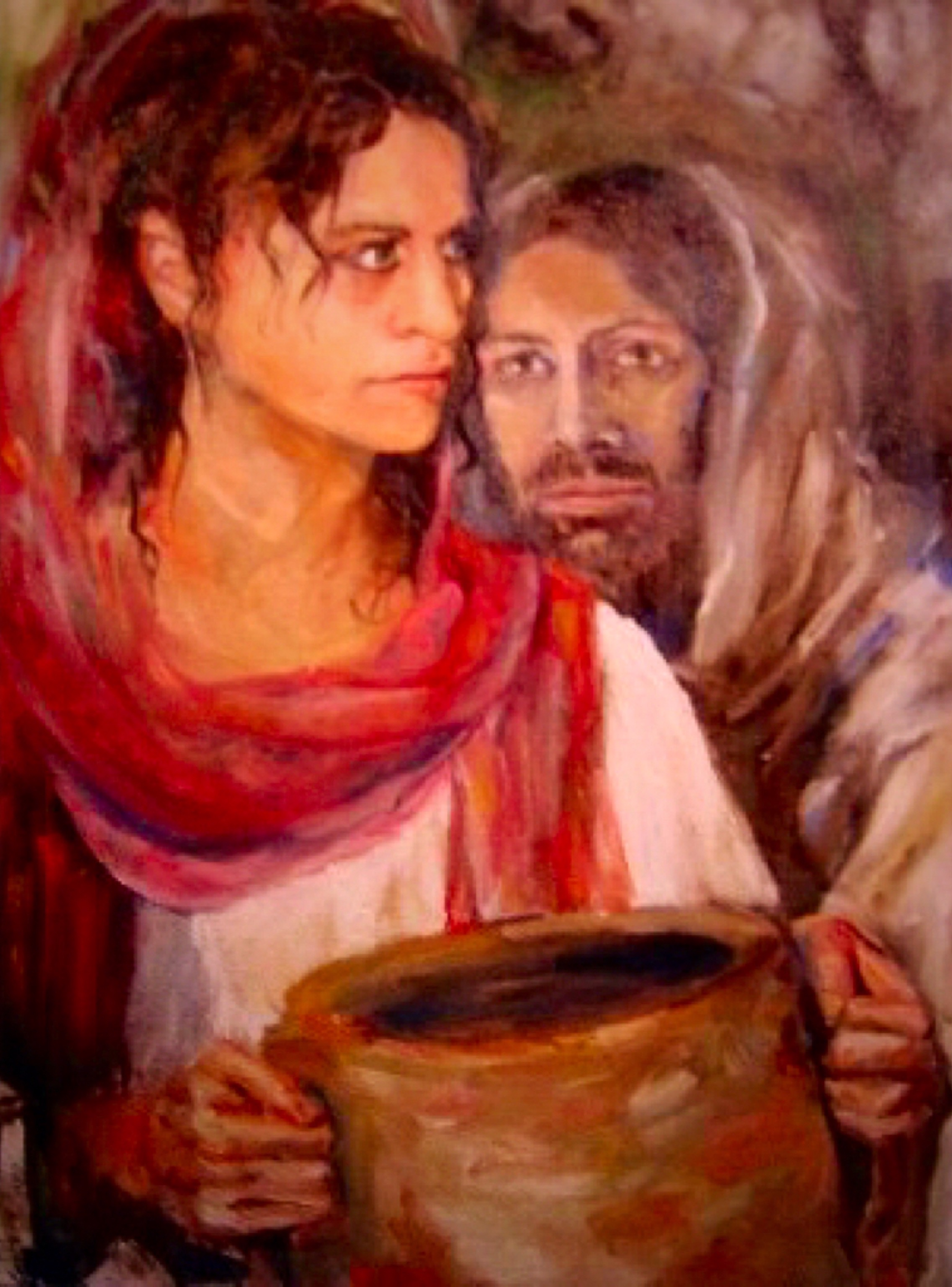 “When therefore the Lord knew how the Pharisees had heard that Jesus made and baptized more disciples than John, (Though Jesus himself baptized not, but his disciples,) He left Judaea, and departed again into Galilee. And he must needs go through Samaria. Then cometh he to a city of Samaria, which is called Sychar, near to the parcel of ground that Jacob gave to his son Joseph. Now Jacob’s well was there. Jesus therefore, being wearied with his journey, sat thus on the well: and it was about the sixth hour. There cometh a woman of Samaria to draw water: Jesus saith unto her, Give me to drink. (For his disciples were gone away unto the city to buy meat.) Then saith the woman of Samaria unto him, How is it that thou, being a Jew, askest drink of me, which am a woman of Samaria? for the Jews have no dealings with the Samaritans. Jesus answered and said unto her, If thou knewest the gift of God, and who it is that saith to thee, Give me to drink; thou wouldest have asked of him, and he would have given thee living water. The woman saith unto him, Sir, thou hast nothing to draw with, and the well is deep: from whence then hast thou that living water? Art thou greater than our father Jacob, which gave us the well, and drank thereof himself, and his children, and his cattle? Jesus answered and said unto her, Whosoever drinketh of this water shall thirst again: But whosoever drinketh of the water that I shall give him shall never thirst; but the water that I shall give him shall be in him a well of water springing up into everlasting life. The woman saith unto him, Sir, give me this water, that I thirst not, neither come hither to draw. Jesus saith unto her, Go, call thy husband, and come hither. The woman answered and said, I have no husband. Jesus said unto her, Thou hast well said, I have no husband: For thou hast had five husbands; and he whom thou now hast is not thy husband: in that saidst thou truly. The woman saith unto him, Sir, I perceive that thou art a prophet. Our fathers worshipped in this mountain; and ye say, that in Jerusalem is the place where men ought to worship. Jesus saith unto her, Woman, believe me, the hour cometh, when ye shall neither in this mountain, nor yet at Jerusalem, worship the Father. Ye worship ye know not what: we know what we worship: for salvation is of the Jews. But the hour cometh, and now is, when the true worshippers shall worship the Father in spirit and in truth: for the Father seeketh such to worship him. God is a Spirit: and they that worship him must worship him in spirit and in truth. The woman saith unto him, I know that Messias cometh, which is called Christ: when he is come, he will tell us all things. Jesus saith unto her, I that speak unto thee am he. And upon this came his disciples, and marvelled that he talked with the woman: yet no man said, What seekest thou? or, Why talkest thou with her? The woman then left her waterpot, and went her way into the city, and saith to the men, Come, see a man, which told me all things that ever I did: is not this the Christ? Then they went out of the city, and came unto him. In the mean while his disciples prayed him, saying, Master, eat. But he said unto them, I have meat to eat that ye know not of. Therefore said the disciples one to another, Hath any man brought him ought to eat? Jesus saith unto them, My meat is to do the will of him that sent me, and to finish his work. Say not ye, There are yet four months, and then cometh harvest? behold, I say unto you, Lift up your eyes, and look on the fields; for they are white already to harvest. And he that reapeth receiveth wages, and gathereth fruit unto life eternal: that both he that soweth and he that reapeth may rejoice together. And herein is that saying true, One soweth, and another reapeth. I sent you to reap that whereon ye bestowed no labour: other men laboured, and ye are entered into their labours. And many of the Samaritans of that city believed on him for the saying of the woman, which testified, He told me all that ever I did. So when the Samaritans were come unto him, they besought him that he would tarry with them: and he abode there two days. And many more believed because of his own word; And said unto the woman, Now we believe, not because of thy saying: for we have heard him ourselves, and know that this is indeed the Christ, the Saviour of the world. Now after two days he departed thence, and went into Galilee. For Jesus himself testified, that a prophet hath no honour in his own country. Then when he was come into Galilee, the Galilaeans received him, having seen all the things that he did at Jerusalem at the feast: for they also went unto the feast. So Jesus came again into Cana of Galilee, where he made the water wine. And there was a certain nobleman, whose son was sick at Capernaum. When he heard that Jesus was come out of Judaea into Galilee, he went unto him, and besought him that he would come down, and heal his son: for he was at the point of death. Then said Jesus unto him, Except ye see signs and wonders, ye will not believe. The nobleman saith unto him, Sir, come down ere my child die. Jesus saith unto him, Go thy way; thy son liveth. And the man believed the word that Jesus had spoken unto him, and he went his way. And as he was now going down, his servants met him, and told him, saying, Thy son liveth. Then enquired he of them the hour when he began to amend. And they said unto him, Yesterday at the seventh hour the fever left him. So the father knew that it was at the same hour, in the which Jesus said unto him, Thy son liveth: and himself believed, and his whole house. This is again the second miracle that Jesus did, when he was come out of Judaea into Galilee.”